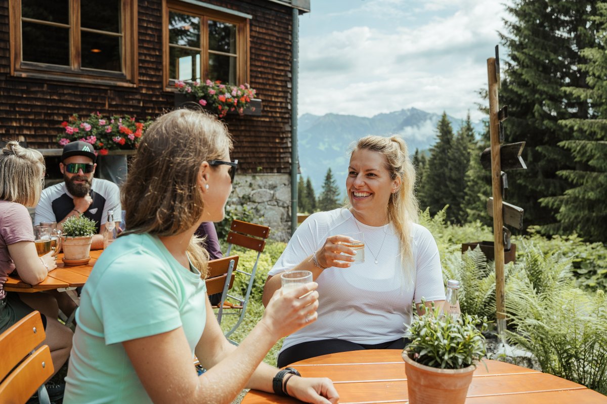 Eine frische Bergbrise weht durch die Lüfte während die Sonne nahestehende Gipfel erhellt und Kuhglocken aus der Ferne das Treiben des Allgäuer Braunviehs begleitet. Das und noch viel mehr ist der Sommer auf der Wannenkopfhütte!